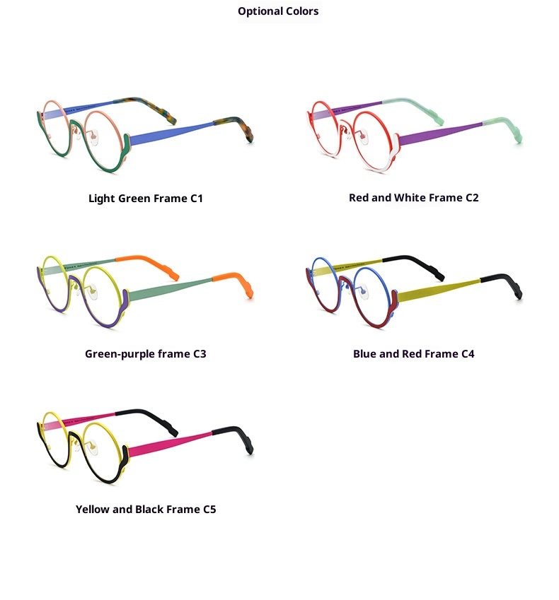Frame color: pink and green frame C1, red and white frame C2, green and purple frame C3, blue and red frame C4, yellow and black frame C5 Style: ins style, internet celebrity style, sweet and cool style
