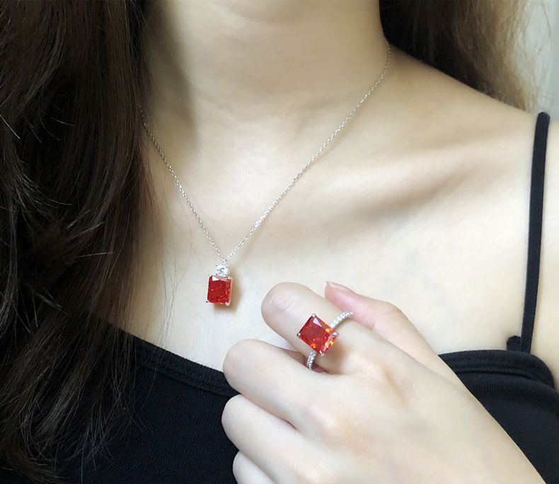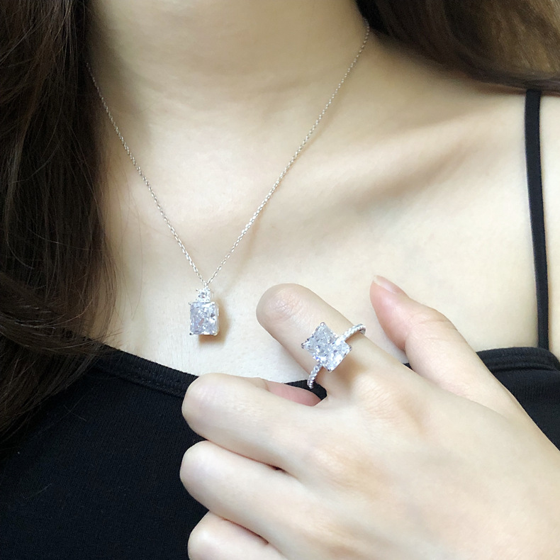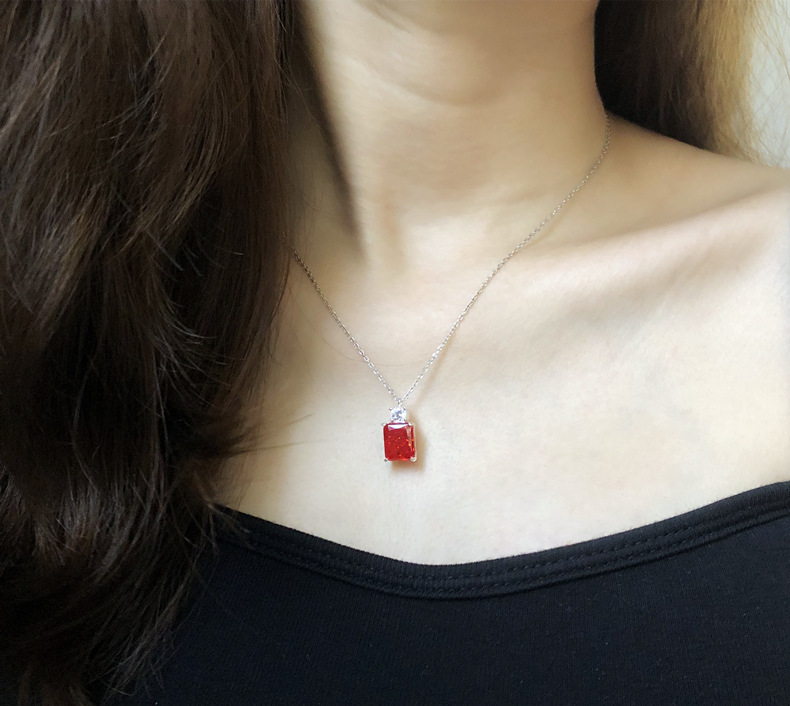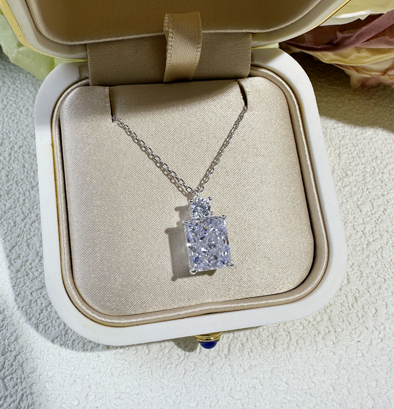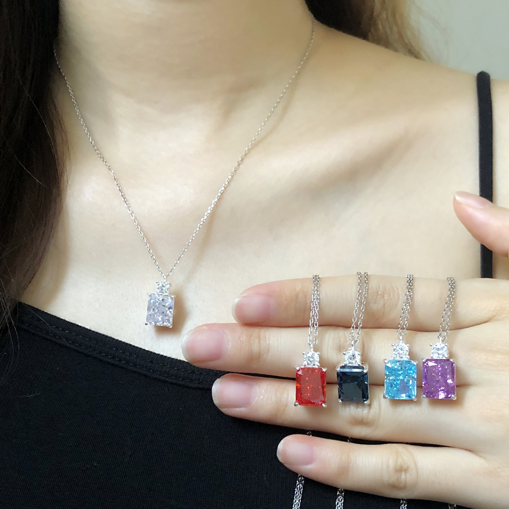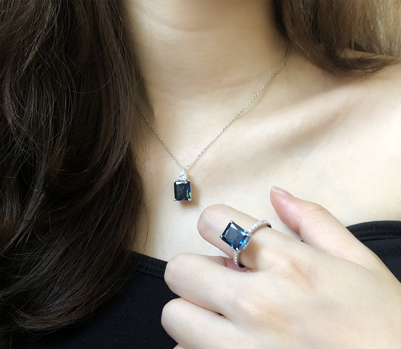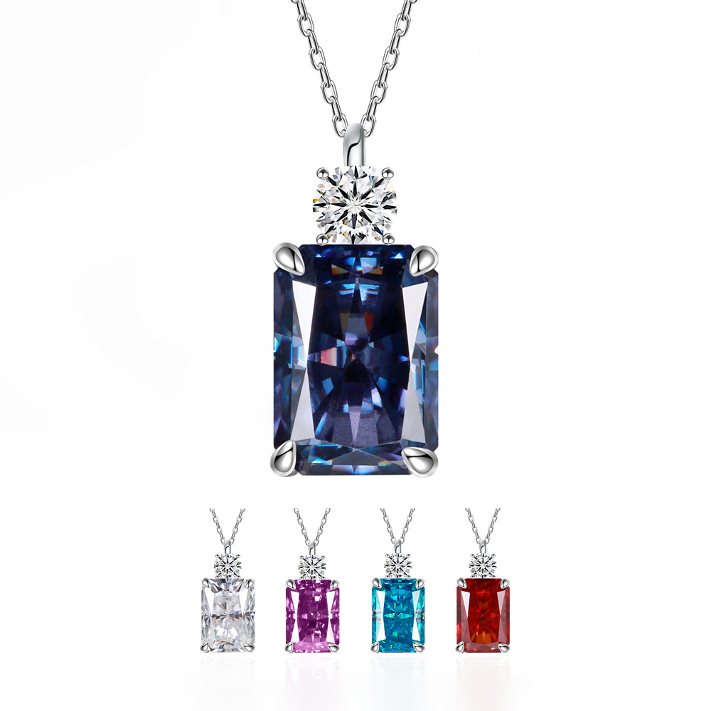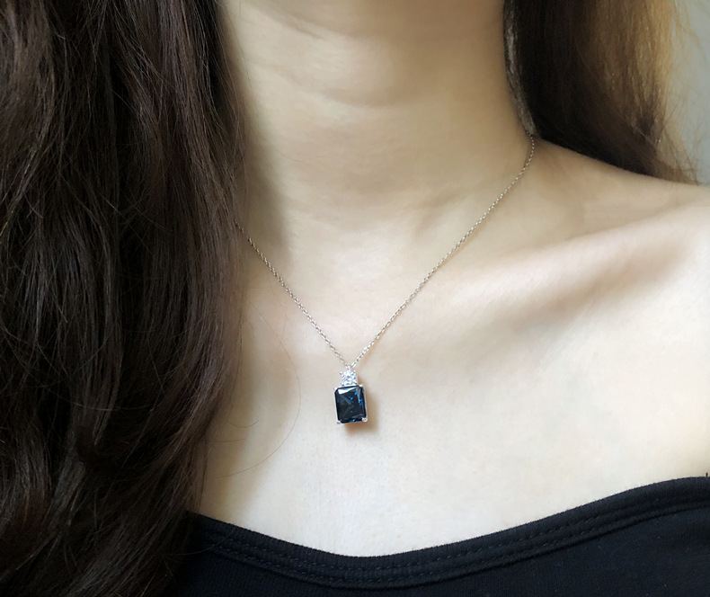 Deep Tanzanite Rectangular Necklace With Ice-Flower Cut High-Carbon Diamond Pendant