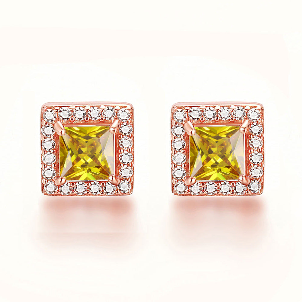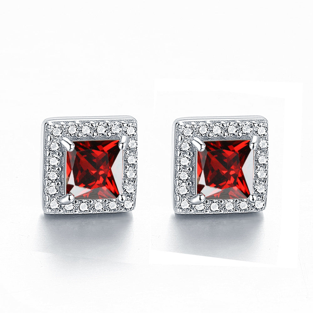 Inlaid Colored Gems Earrings S925 Sterling Silver Earrings