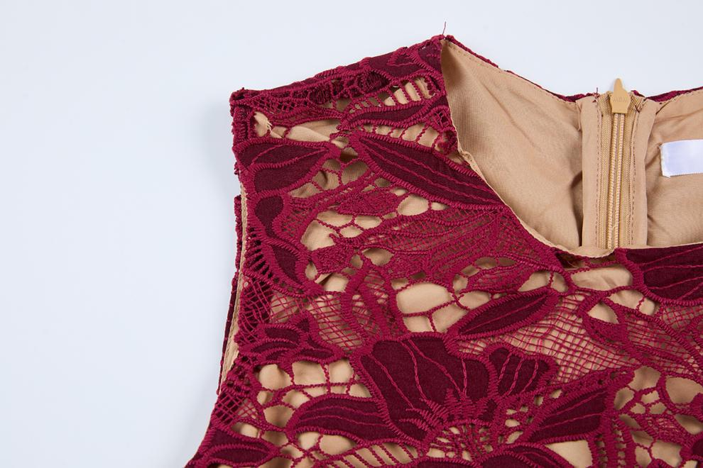 Lace Hollowed Out Sleeveless Waist Cinched Fish Tail Dress