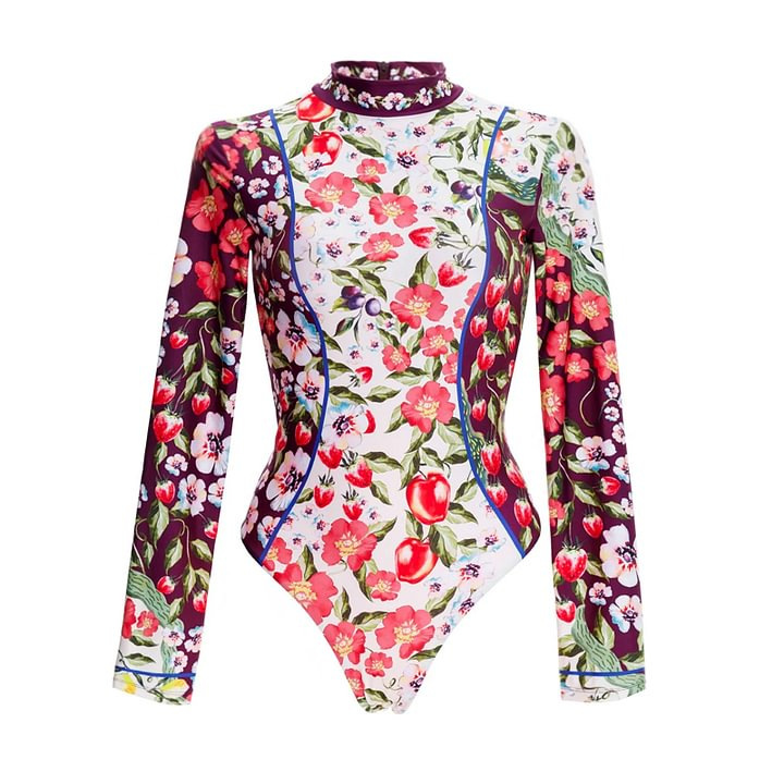 New European And American-style Printed Long-sleeve One-piece Swimsuit Set For Surfing