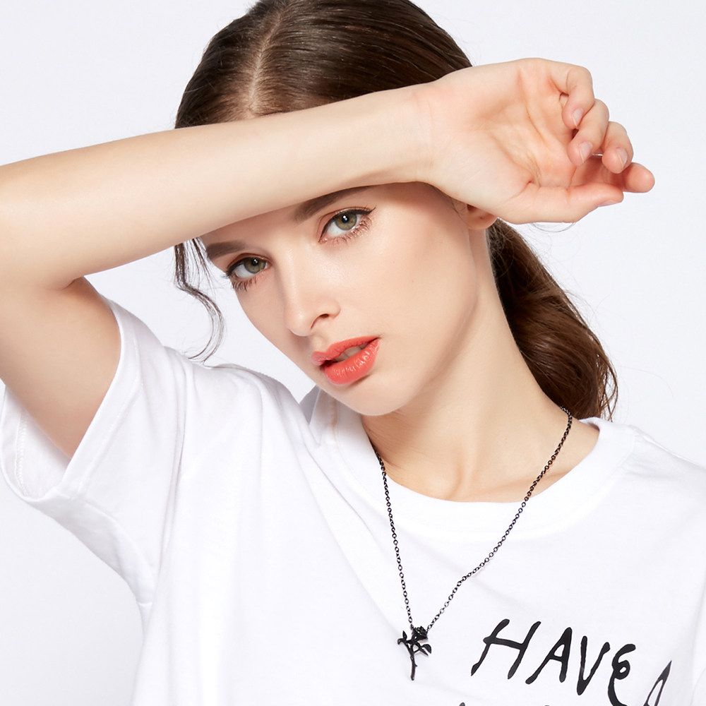 Punk-style Trendy All-match Minimalist Korean-style Black Rose Necklace Pendant