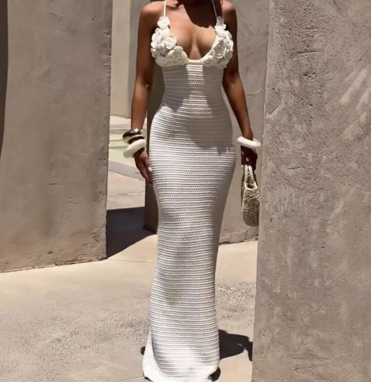 Womens Sexy Camisole 3D Floral Wrap-Style Knitted Dress