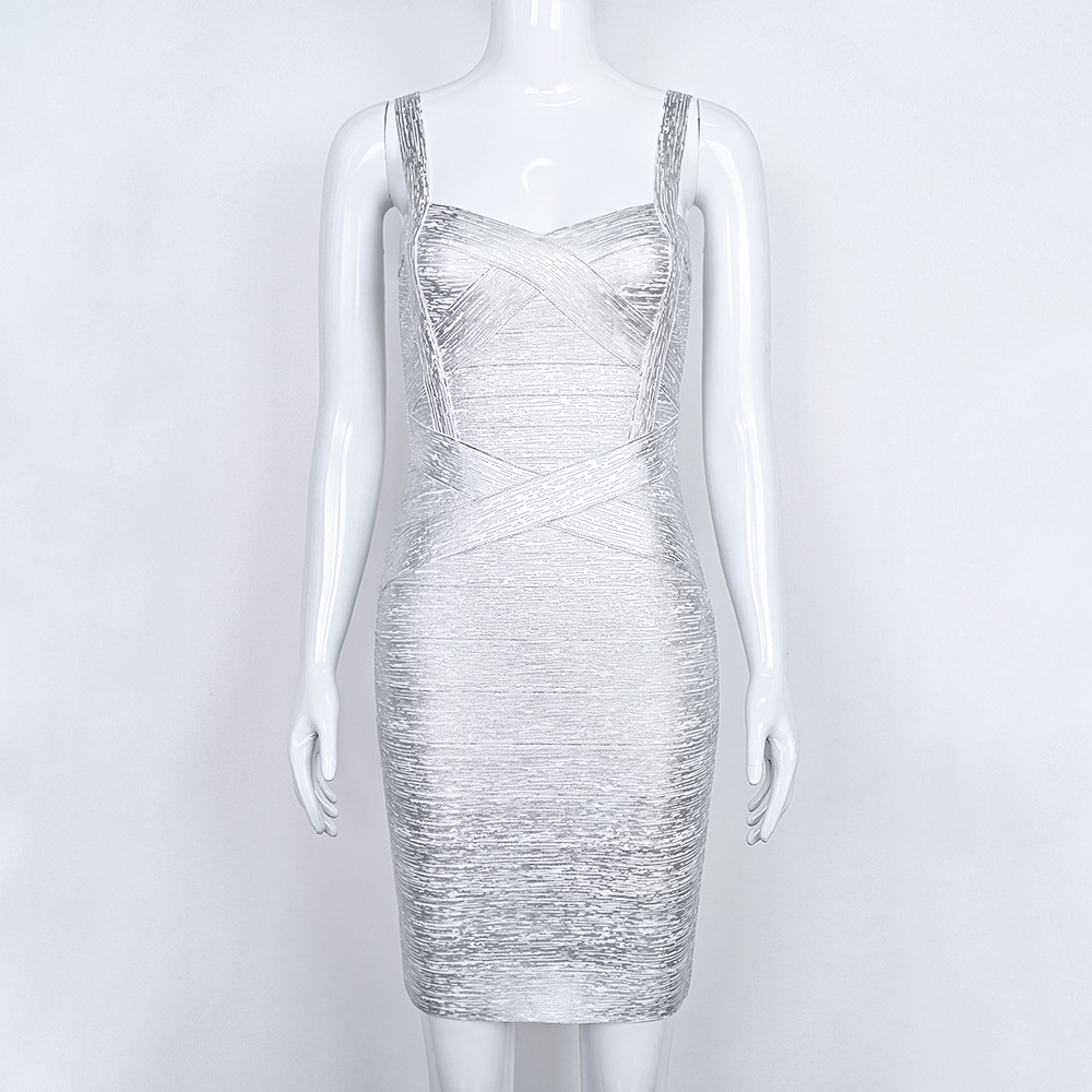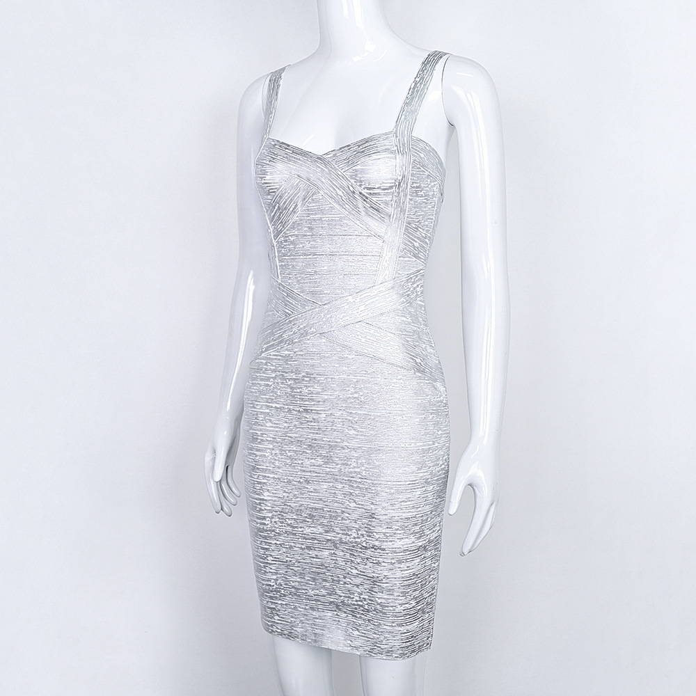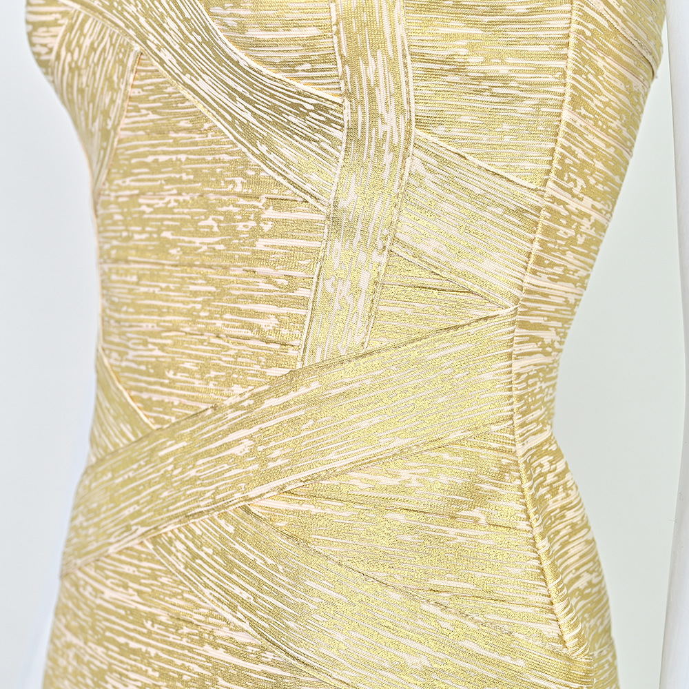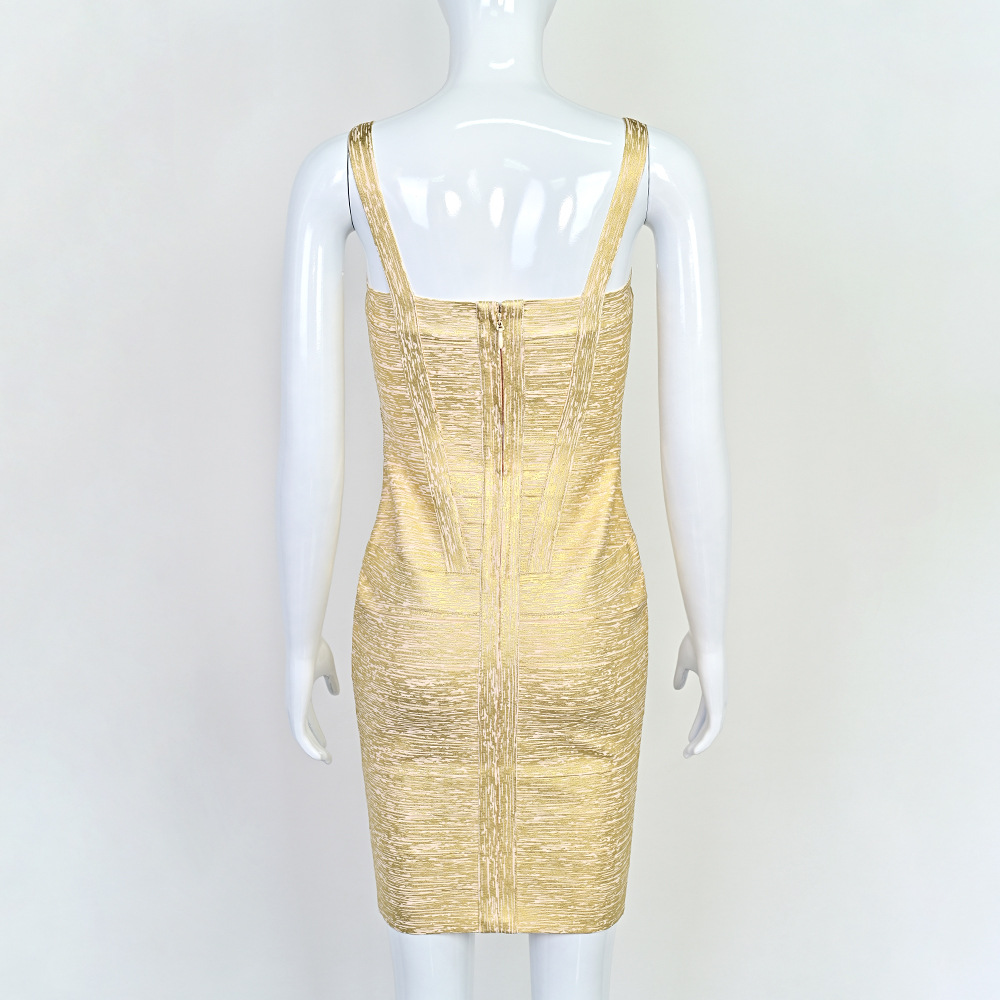 Womens Strap V-Neck Gold-Stamped Sexy Bandage Dress